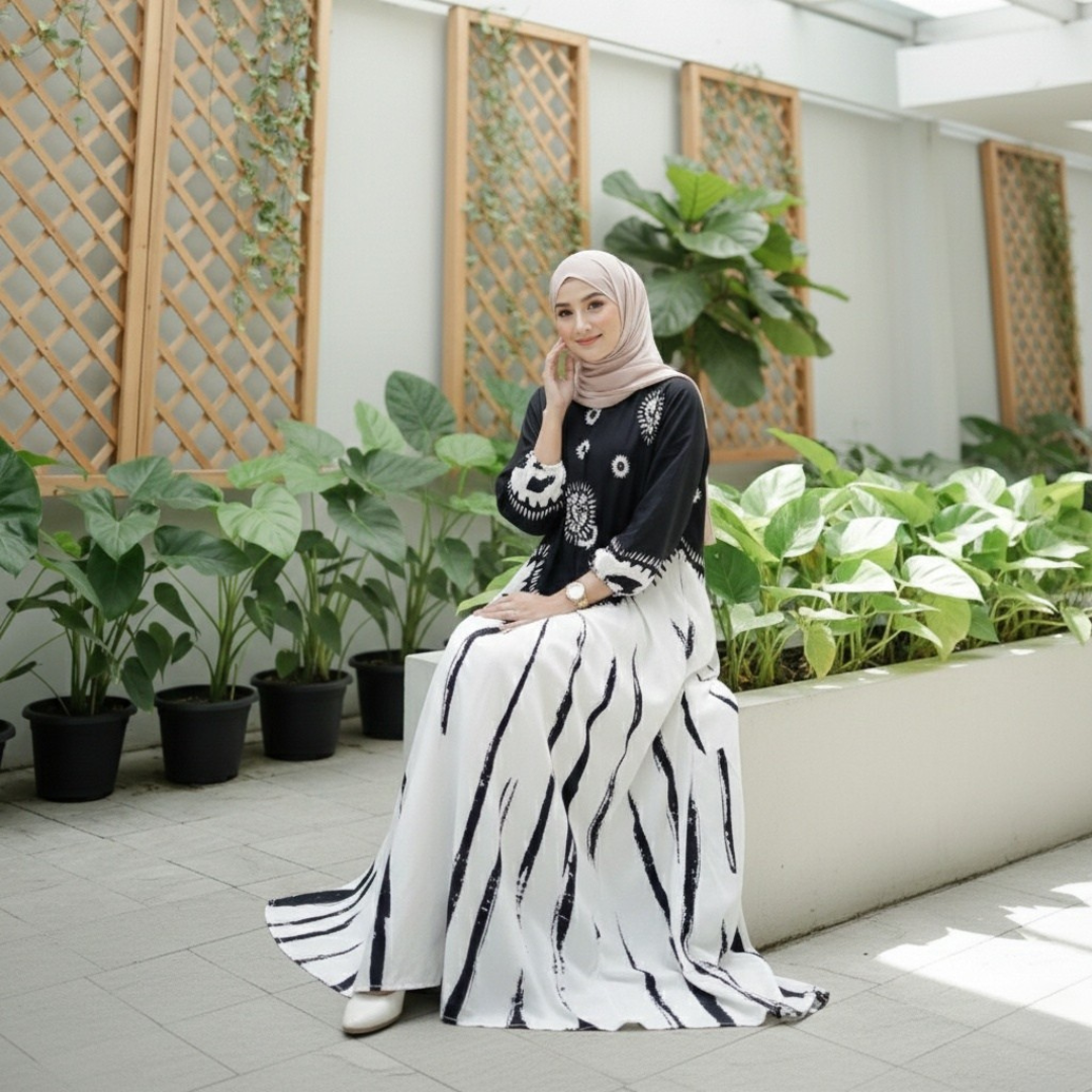 Menghadirkan motif etnik modern eksklusif dengan teknologi Digital Print High Resolution, menjamin detail corak yang tajam, warna yang awet, serta tampilan mewah yang tidak pasaran.