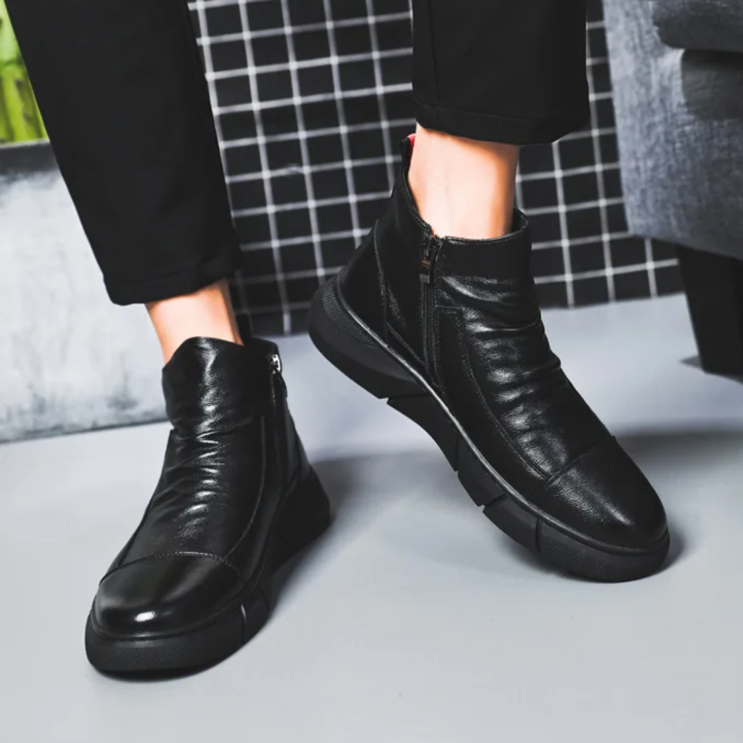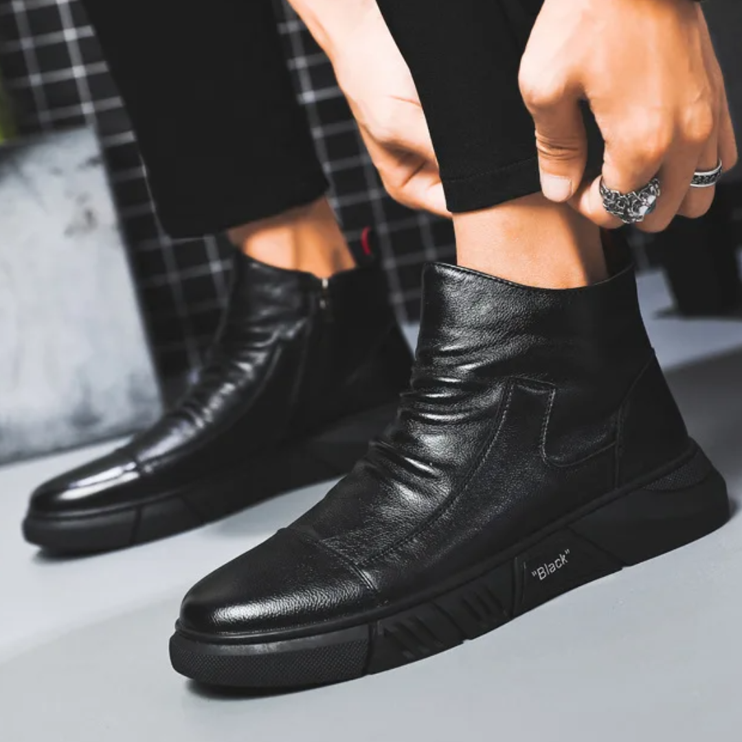 Kombinasi sempurna antara durabilitas dan gaya urban. Sepatu ankle boots dengan bahan PU Leather Premium dan aksen Ruched Leather yang maskulin. Dilengkapi sol karet tebal (chunky) yang kokoh untuk menemani aktivitas riding, hangout, hingga konser musik Anda.